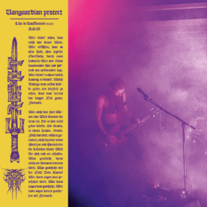 The live sound that is presented on this release is overwhelming, especially when again taking into consideration the fact that this sound is summoned by a mere amount of two people. Apart from that, it is also refreshing to get to know sound material in the “browsing” way as it is offered at this show, leaving room for re-interpretations of their very own creations. The vinyl variant that bears this sonical offering, which came via Zann’s Records and Drei Gleichen, comes along with an incredibly beautiful pressing and every copy also contains an A4 artprint featuring a “vanguardian” illustration by Bloodlvst. This cycle is finished, this live album could be considered a full stop on the level of releases regarding this first cycle and we can be very keen to find out how the second cycle will commence.